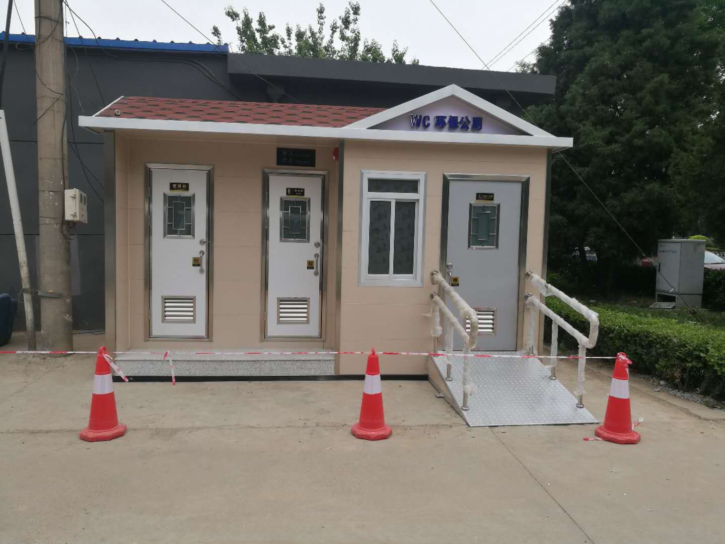 當(dāng)然,移動(dòng)廁所不會(huì)受到任何工作環(huán)境的限制,其外部結(jié)構(gòu)特別輕。整個(gè)顏色在搭配過程中特別合理,適合安裝在一些不同的城市街道或大型公共場所,尤其便于移動(dòng)。移動(dòng)廁所是由鋼焊接而成的框架結(jié)構(gòu)。通常,底部用槽鋼或工字鋼焊接,立柱用方鋼制成。在墻體的基礎(chǔ)上,安裝墻體材料,包括彩鋼板、金屬雕版、鋁塑板、防腐木等。框架式機(jī)構(gòu)可以滿足提升要求,可以移動(dòng)挪威進(jìn)行提升,因此被稱為移動(dòng)廁所。本發(fā)明不受任何工作環(huán)境的限制,外觀結(jié)構(gòu)輕巧,配色合理,適用于城市街道、公園綠化、車站、碼頭、旅游景點(diǎn)、別墅區(qū)、新建住宅區(qū)、大型建筑工地、廣場、人口稠密的公共場所和繁華的商業(yè)街。移動(dòng)式公廁具有可移動(dòng)、可組合、便于運(yùn)輸?shù)膬?yōu)點(diǎn)。此外,移動(dòng)廁所的內(nèi)部配置高于普通固定廁所。
