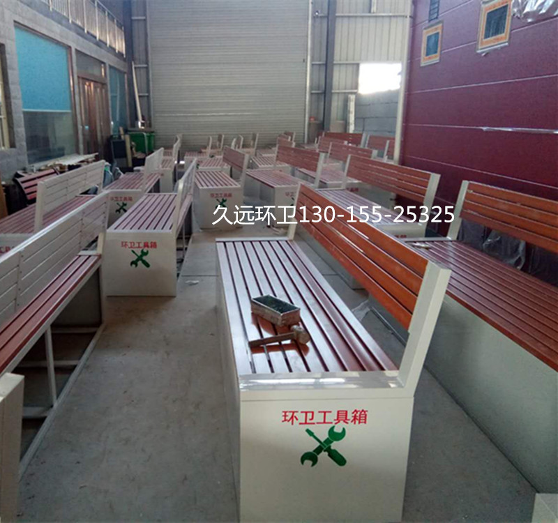 環(huán)衛(wèi)工具箱:也叫保潔員工具箱,環(huán)衛(wèi)工具椅,保潔員休息座椅,市政保潔箱等。工具箱常用尺寸為:長(zhǎng)2400*寬500*高550mm,也可以做成2米,2.4米,2.7米等,寬度和高度也可以定做,滿足不同客戶、不同場(chǎng)所的使用要求。