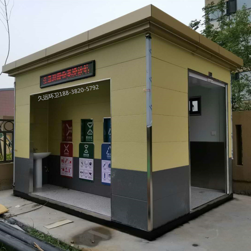 垃圾分類定時定點收集站廠家直銷——久遠環衛是一家集研發生產、銷售服務為一體的大型環衛設備生產企業,公司注冊資金5000萬元,占地面積50余畝,擁有現代化生產車間1萬余平方米,辦公面積1000余平方米,在職員工200多人,具有雄厚的技術及生產實力。 公司主要生產垃圾壓縮中轉站、垃圾分類收集房、環保移動公廁、各類垃圾桶果皮箱、環衛工具箱、環衛道班房、崗亭、休閑座椅、等公共環衛設施。